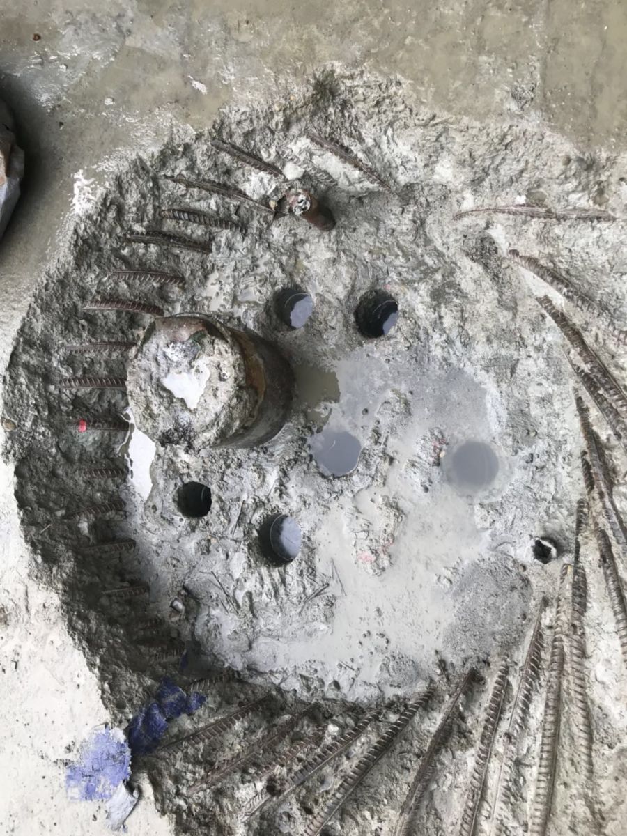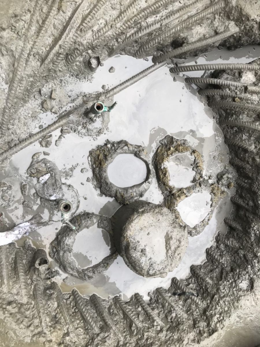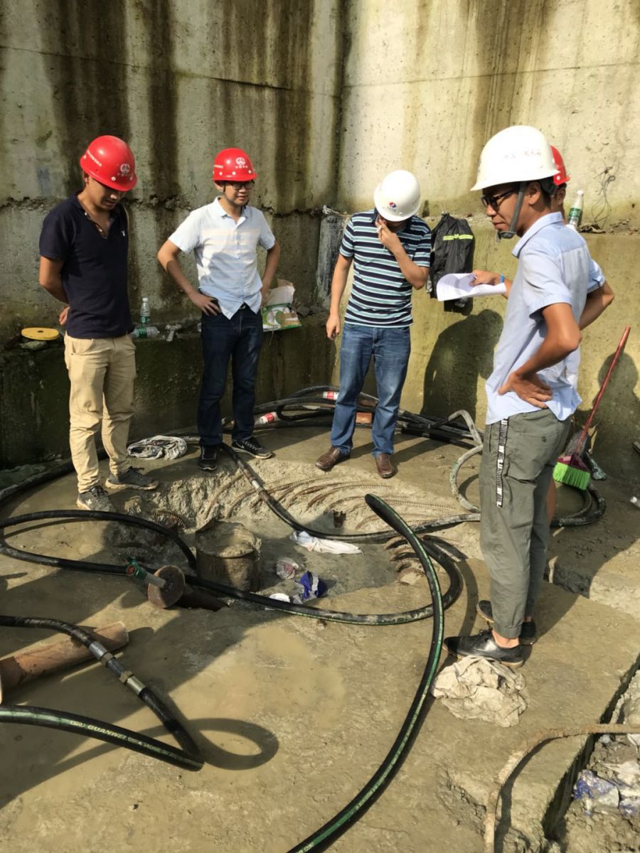 成都地铁五号线北站扩能项目桩基在28米位置出现夹沙,沟槽及断桩现象,我公司经过分析与会审,采用高压注浆与WFS工法相结合的工艺,圆满解决此难题!